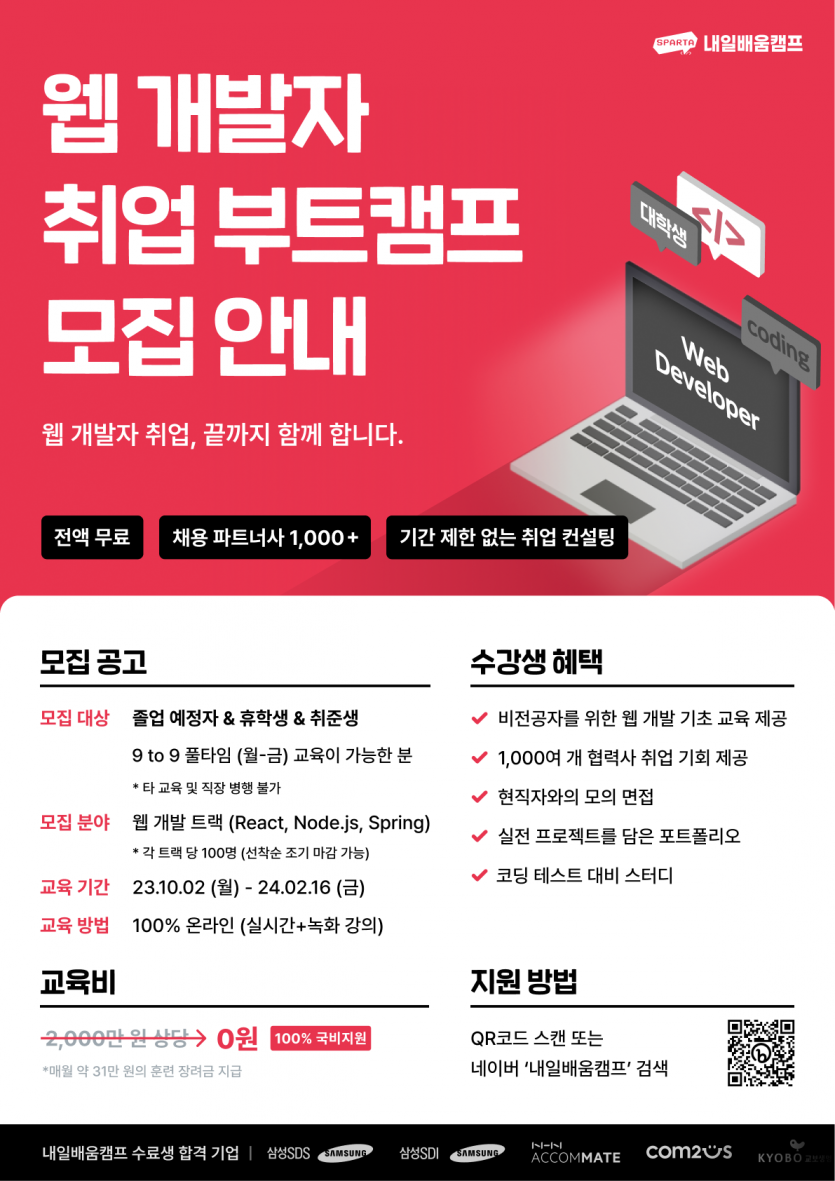 웹 개발자 취업, 스파르타가 끝까지 함께 합니다.
