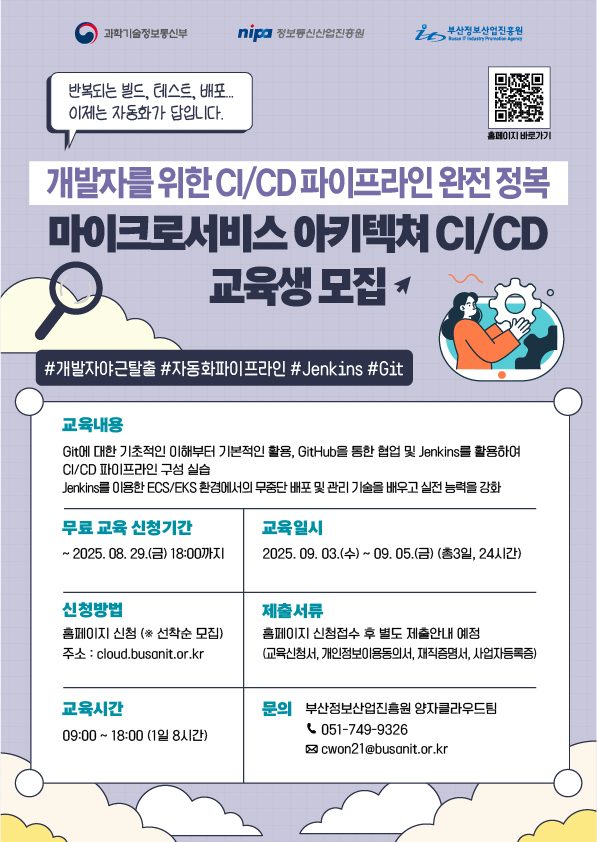 (재)부산정보산업진흥원에서 <마이크로서비스 아키텍쳐 CI/CD> 교육생을 모집합니다.