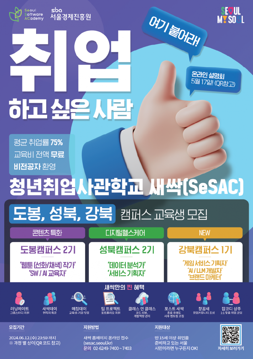 ♥ 청년취업사관학교 새싹(SeSAC) 도봉/성북/강북캠퍼스 교육생 모집! (~ 06.16) ♥