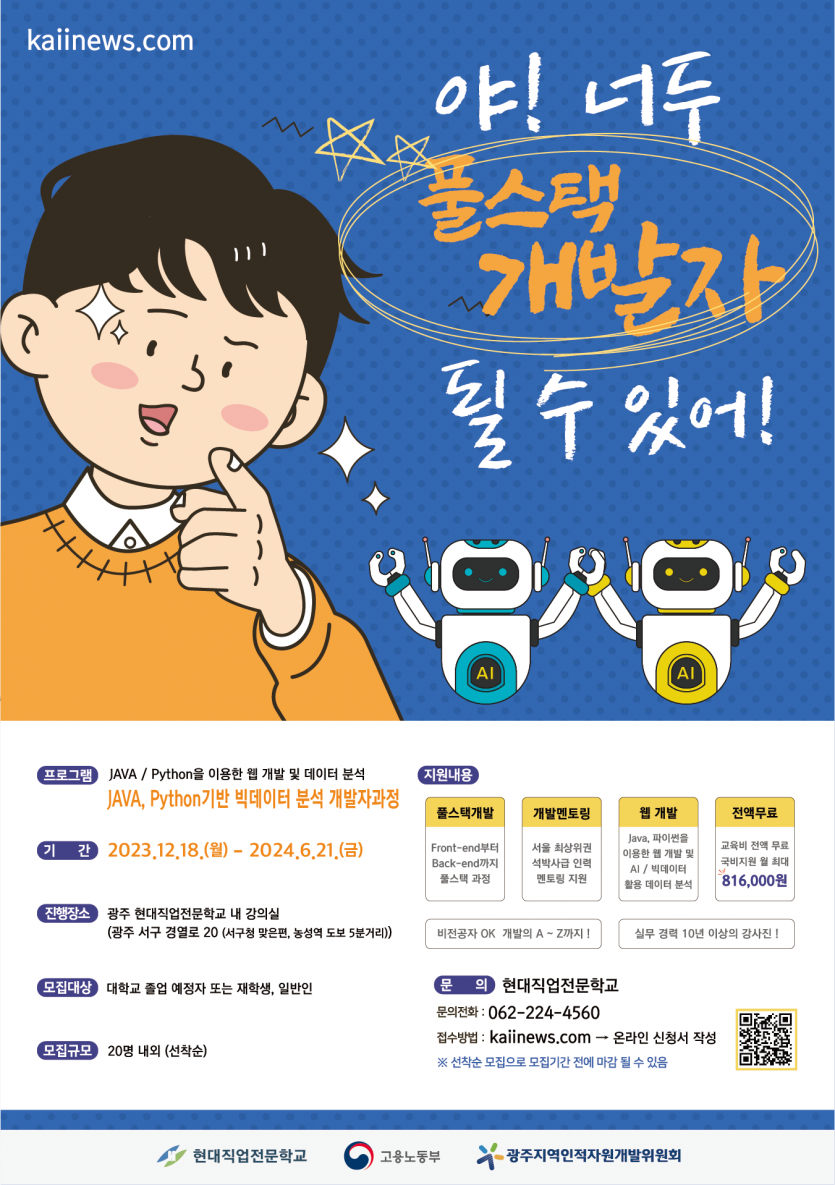 [고용노동부 | 현대전문직업학교] JAVA, Python 기반 빅데이터 분석 개발과정 교육생 모집 (~12/17)