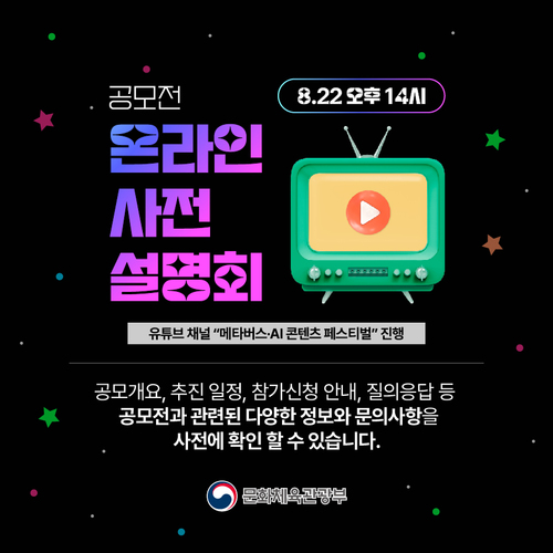 ■ 온라인 사전설명회 | 유튜브 채널 ‘메타버스 AI 콘텐츠 페스티벌’에서 다시보기(← Click!)