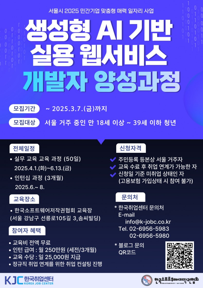 2025년도 민간기업 맞춤형 매력 일자리 사업 [생성형AI 기반 실용 웹서비스 개발자 양성과정]