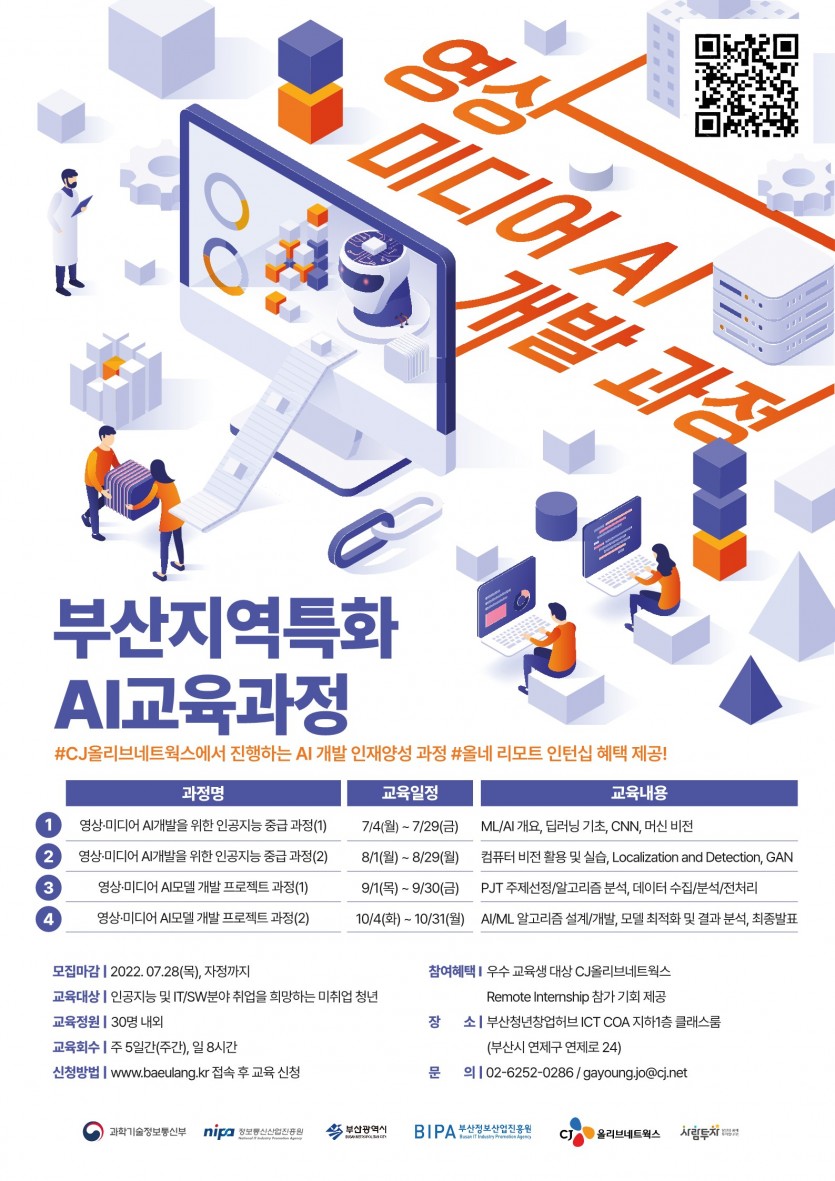 [CJ올리브네트웍스] 부산 지역특화 영상 미디어 AI개발 과정 교육생 추가모집(~07.28) 홈 자유 [CJ올리브네트웍스] 부산 지역특화 영상 미디어 AI개발 과정 교육생 추가모집(~07.28) 페이지 정보 주식회사엘엔피 쪽지보내기 메일보내기 자기소개 아이디로 검색 전체게시물 쪽지보내기 메일보내기 자기소개 아이디로 검색 전체게시물 작성일 22-06-14 17:48 403 0 관련링크 https://www.baeulang.kr/bbs/board.php?bo_table=AI&wr_id=144 228회 연결 본문 참가신청 바로가기 추천 0 목록 댓글목록 목록