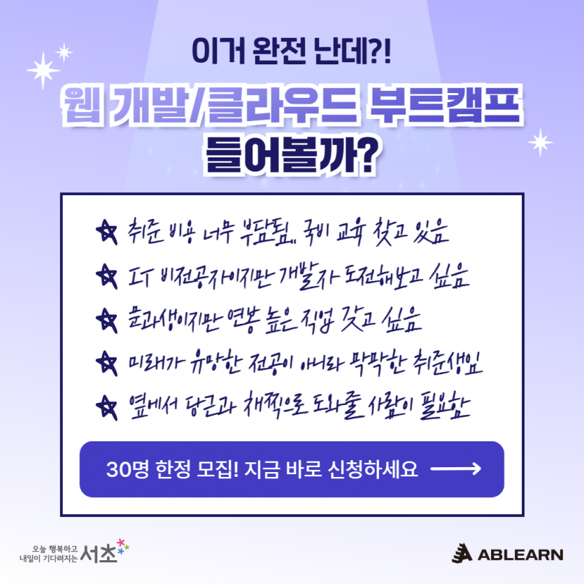 ★전액국비지원★ 4개월간 제대로 공부하고 개발자로 취업할 사람을 찾습니다.