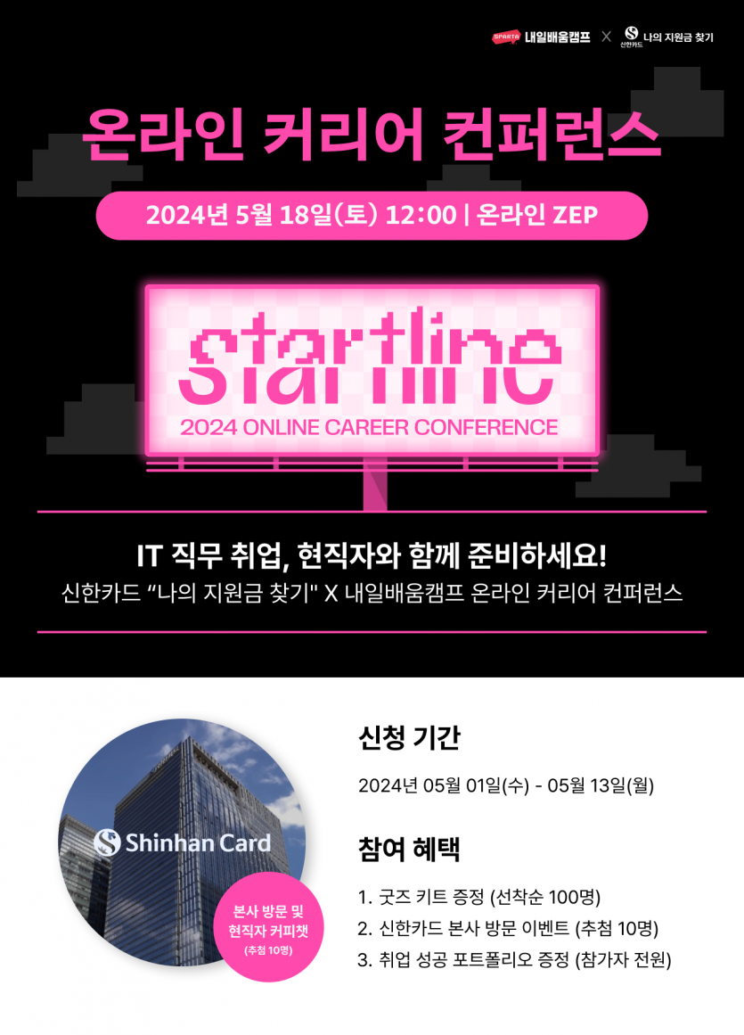 IT직무 취업, 혼자 준비하기 막막하다면..? [2024 스타트라인(STARTLINE) 온라인 커리어 컨퍼런스](~5/13)