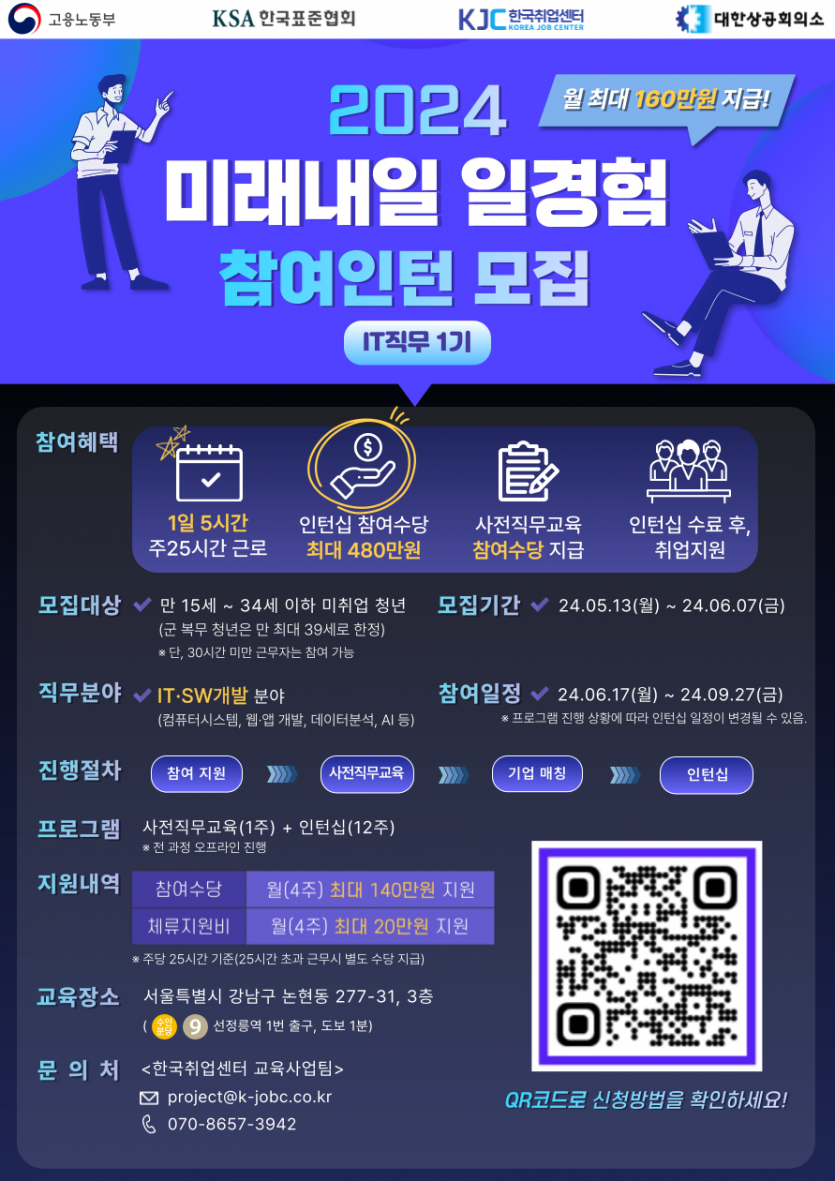 2024년 미래내일 일경험(인턴형 IT직무 1기)을 진행합니다.