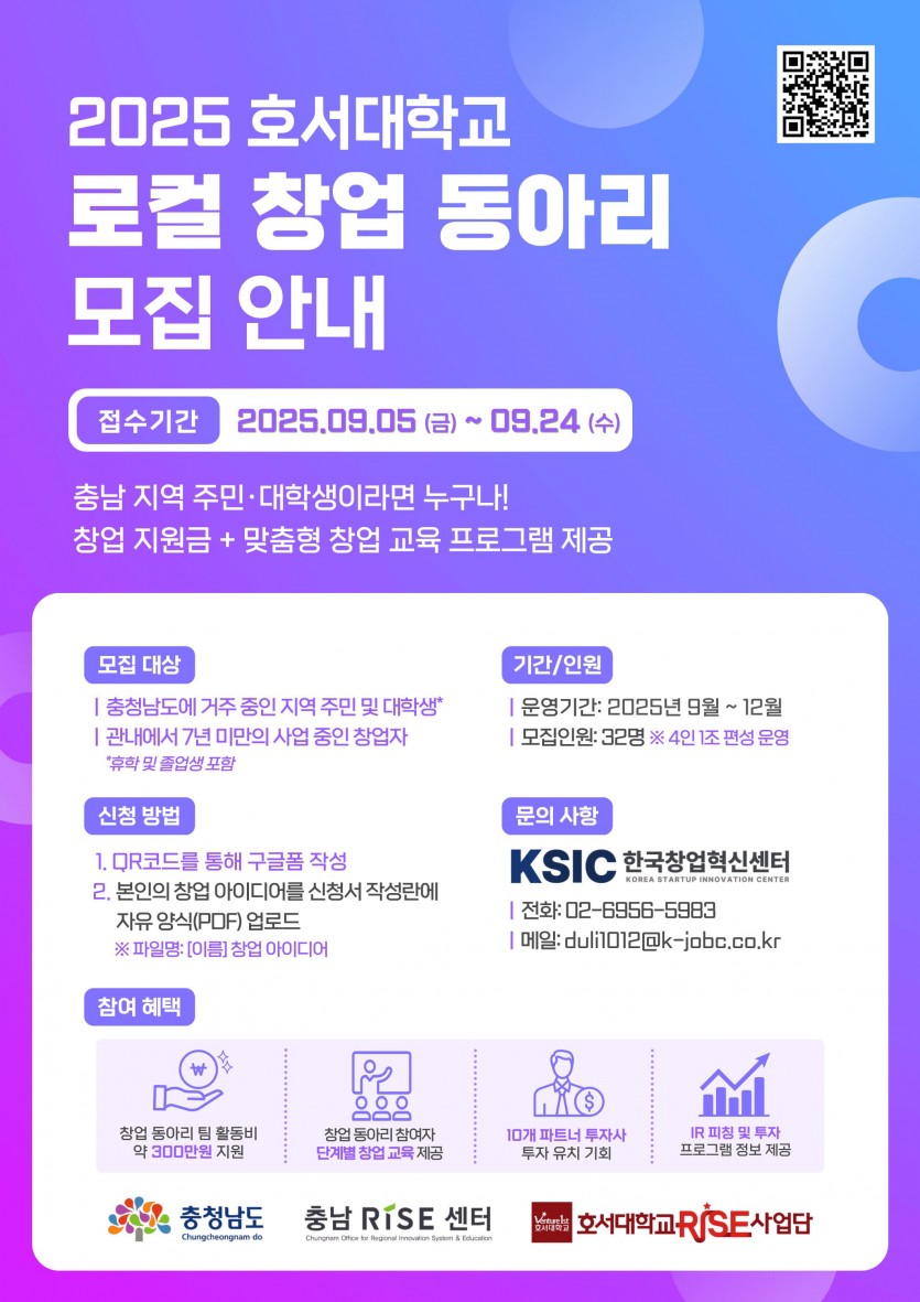 [호서대학교] 창업 전문가 멘토링+300만원 지원! 로컬 메이커스 창업 동아리 참여 모집 (~09/24)