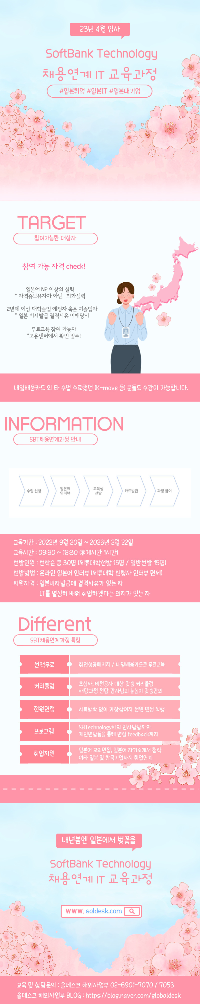 [솔데스크] 일본IT 자바웹개발자 무료취업교육 6기모집_feat.소프트뱅크테크놀로지(~9.19)