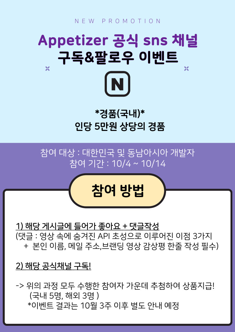 APPETIZER 공식 SNS 채널 구독&팔로우 이벤트