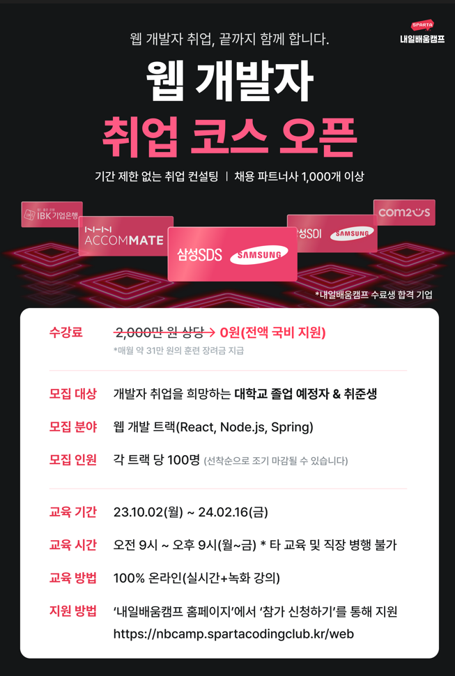 [전액 국비지원] 경쟁력 있는 웹개발자 취업 준비를 위한 가이드, 스파르타 내일배움캠프 입니다.