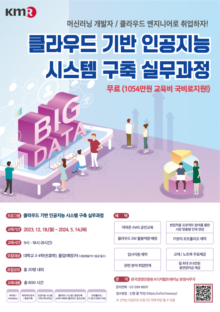[고용노동부 | 한국경영인증원] 클라우드기반 AI시스템 구축 실무과정 8기 모집