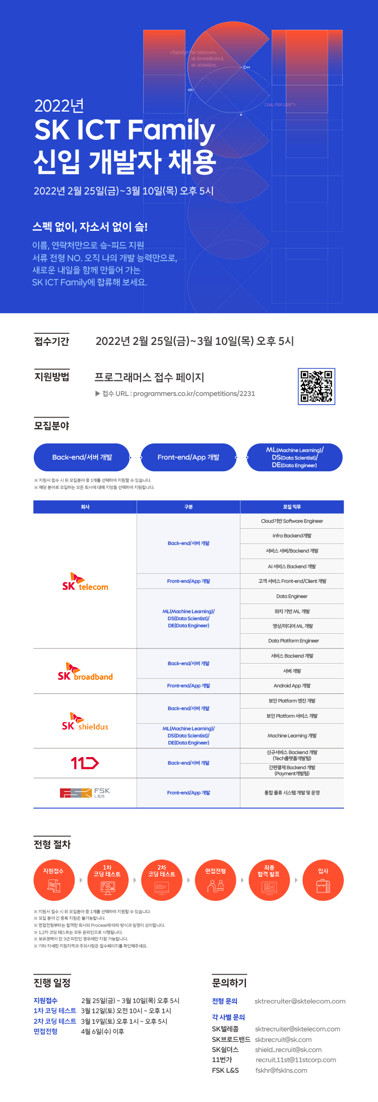 2022 SK ICT Family 신입 개발자 채용 홈페이지에서, 더 많은 채용 정보를 확인해보세요.