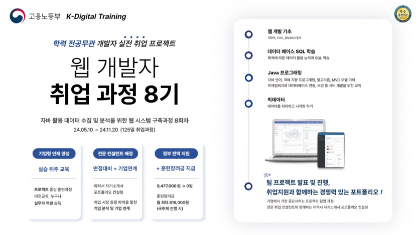 정보[취업과정8기] 5월 국비 웹 개발자 양성 무료교육 과정