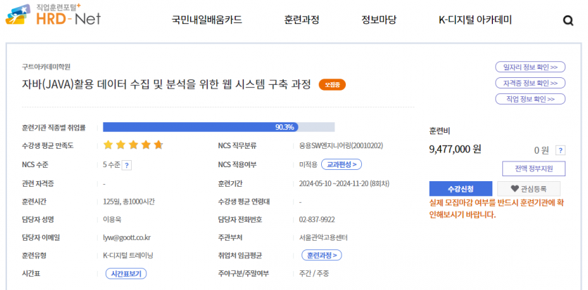 24.05.10 ~ 24.11.20 (125일 취업과정)