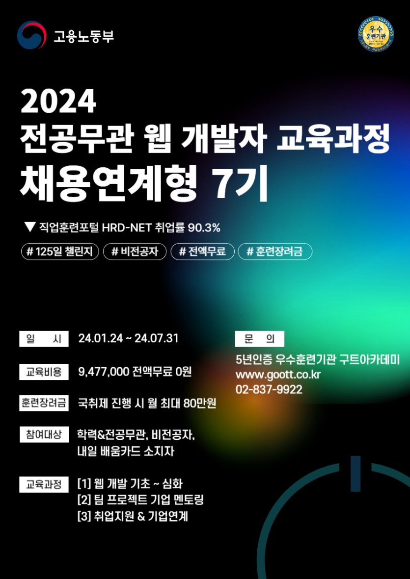 정보[hrd 평균 취업률 90.3%] 웹 개발자 교육과정 채용연계형 / 전공무관 ‘RAS‘ 학습법 활용