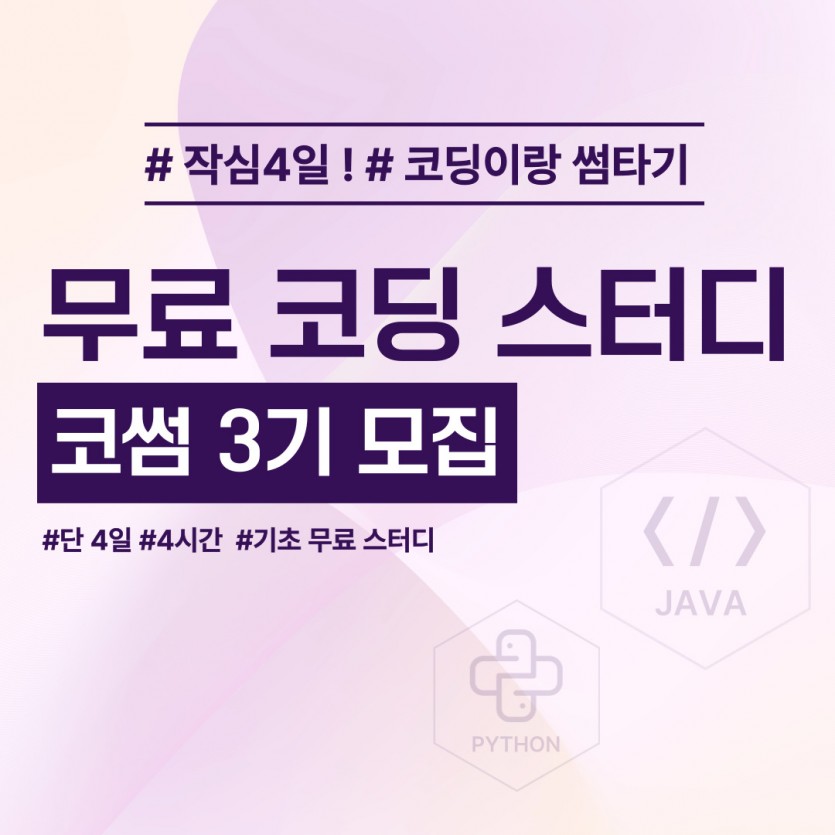 정보[4일/4시간] 무료 코딩 스터디를 함께할 코썸 3기 모집