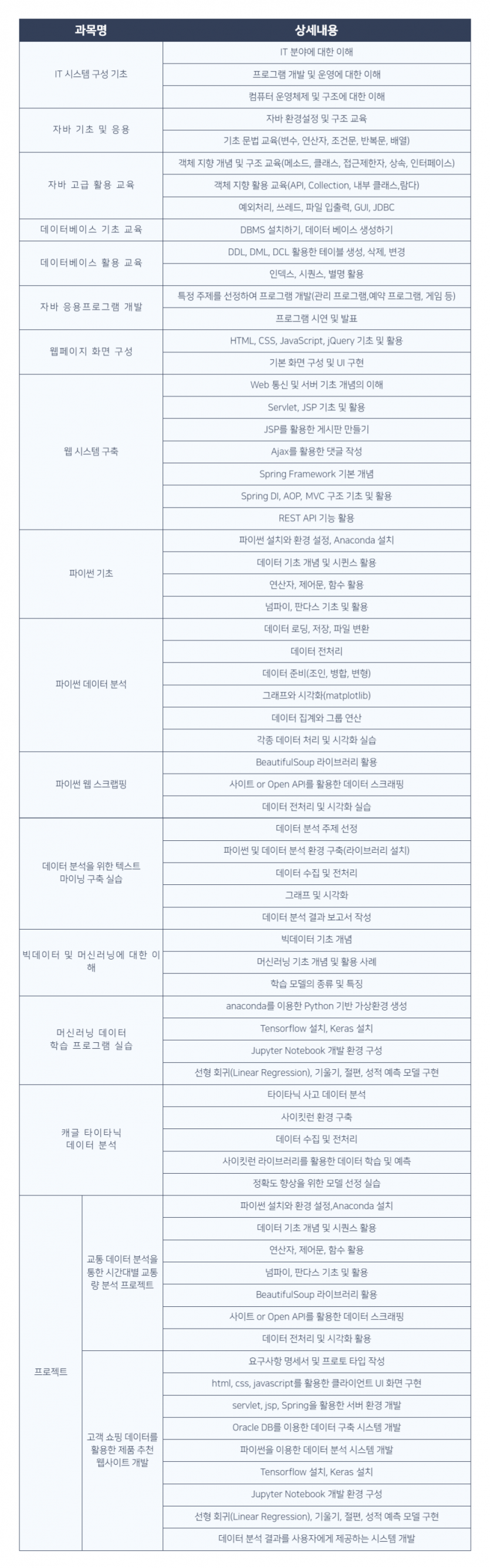 - 기업이 요구하는 핵심 역량으로만 구성된 커리큘럼
