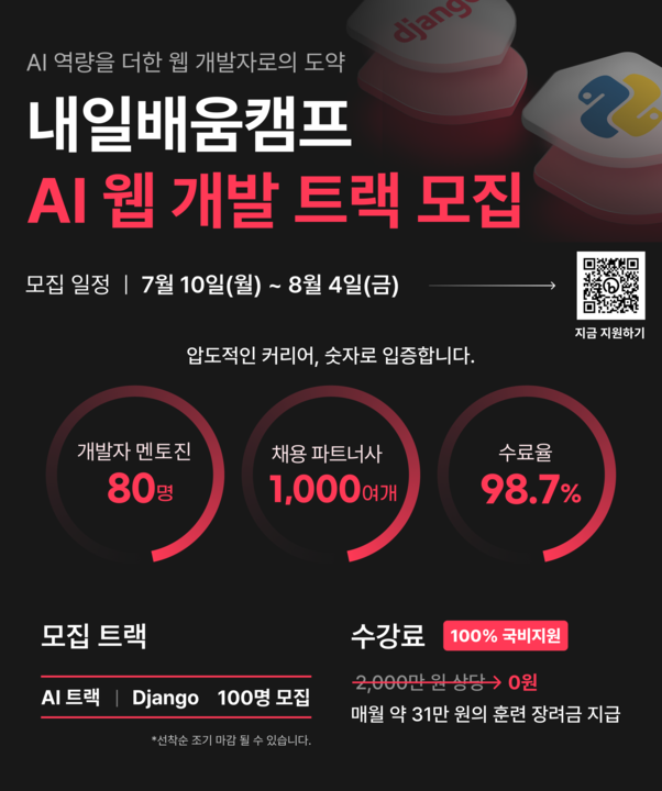 정보[내일배움캠프] AI 웹 개발자 부트캠프 모집(7/10~8/4)