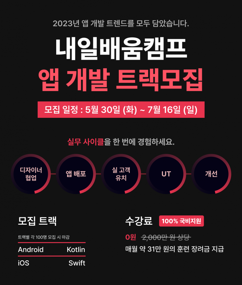 정보[스파르타코딩클럽] 2,000만원 교육비 전액 지원, 내일배움캠프 앱 개발자 취업 트랙 모집 시작!