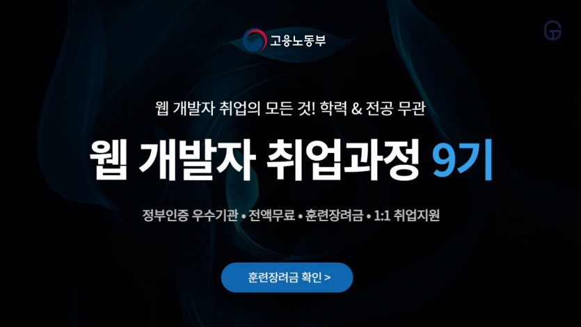 정보[취업과정9기] 전공무관 웹 개발자 양성 무료교육 (7월)