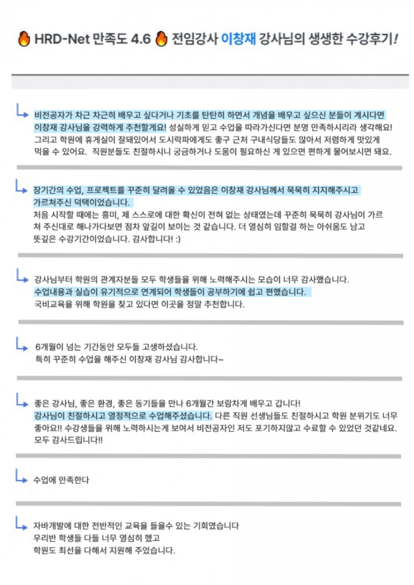 ▶ HRD 수강후기 확인