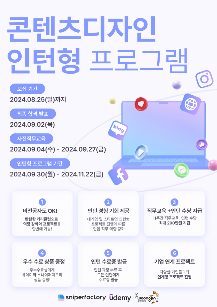 정보[유데미 X 웅진씽크빅 X 스나이퍼팩토리] 콘텐츠 디자인 인턴형 프로그램 과정