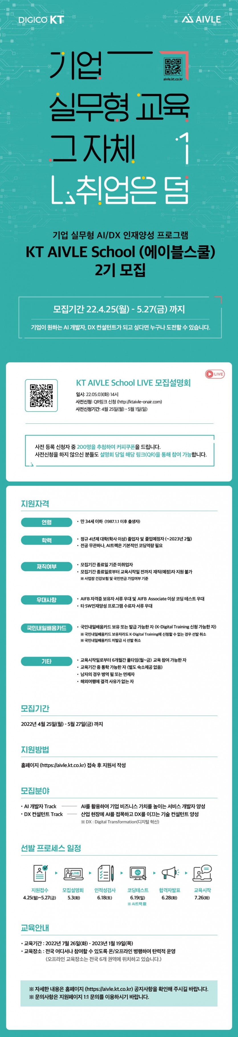 · 온라인 LIVE모집설명회 사전신청 : http://ktaivle-onair.com