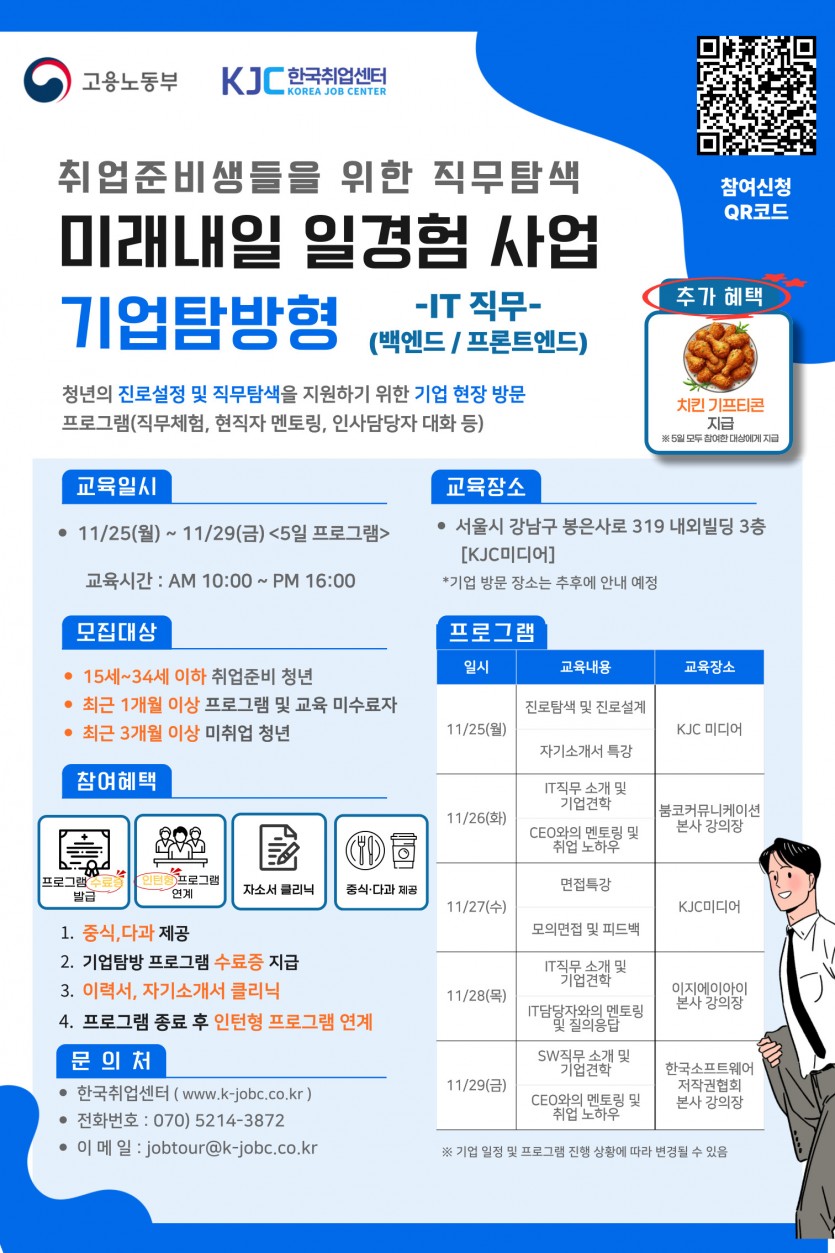 고용노동부에서 주관하는 미래내일 일경험 사업 기업탐방형 프로그램을 진행합니다.