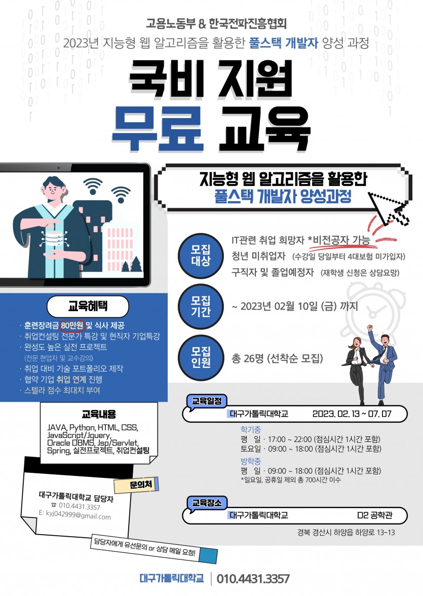 정보[대구•경북지역 전액국비지원/취업연계] 취업 희망자&전공, 비전공 풀스택 수강생 모집!