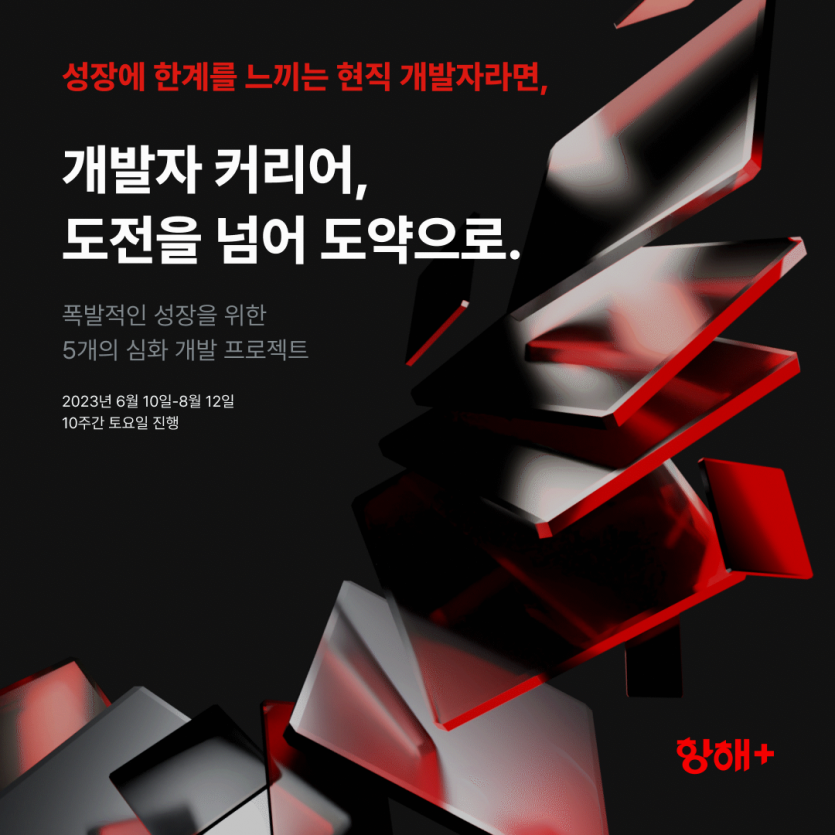 항해 플러스와 10주 간 클린코드, 대규모 트래픽 테스트, 오픈소스 등 현업 주니어가 경험하기 힘든 5개의 심화 과제를 풀어보며 폭발적인 커리어 도약을 실현해보세요.