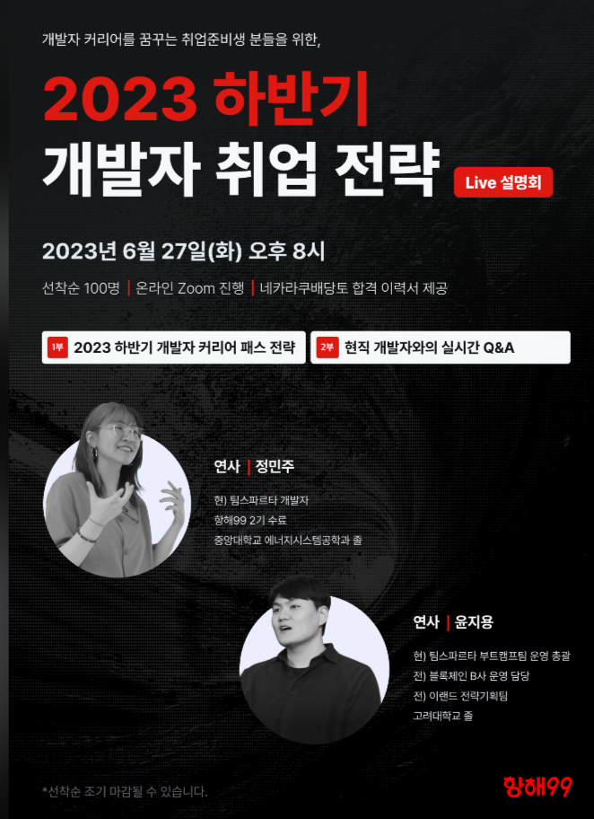 정보[항해99] 2023 하반기 개발자 취업 전략 LIVE 설명회 안내 (*선착순 100명)
