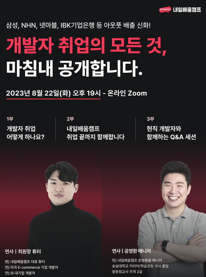압도적 아웃풋으로 수많은 개발자를 양성한 내일배움캠프가 개발자 취업의 A to Z를 사전설명회에서 공개합니다.