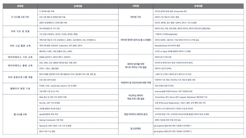 - 기업이 요구하는 핵심 역량으로만 구성된 커리큘럼