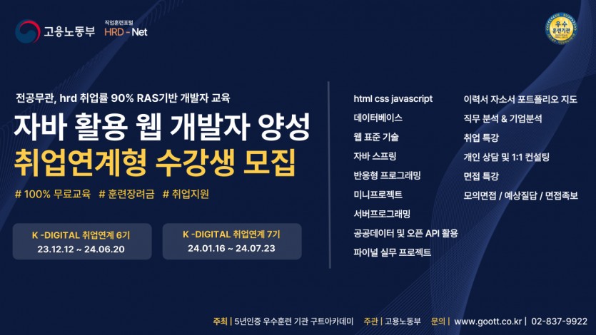 정보24년 웹 개발자 취업연계형 6기, 7기 모집