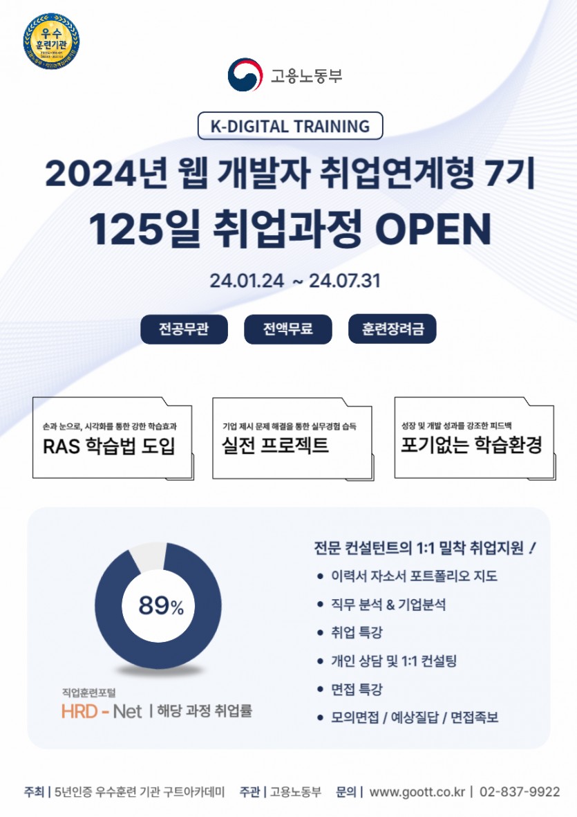 정보[24년 취업연계형 7기] 전공무관, RAS 기반 교육 웹 개발자 취업과정 (~1/23)